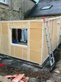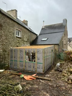 Extension Bois, Ossature 145mm, Isolation laine de bois 140mm, Pare pluie, Bardage Douglas naturel
