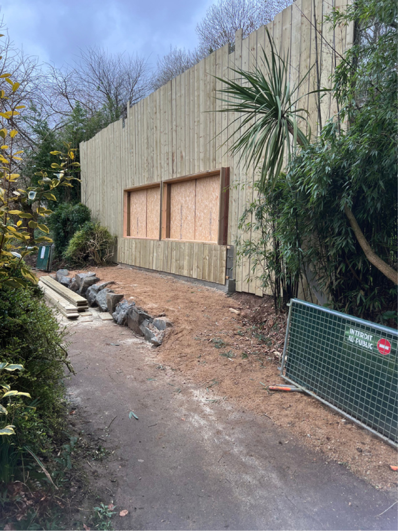 Bardage bois sapin classe 4 Extérieur avec couvre joint, point de vue vitrée intégré dans le mur
